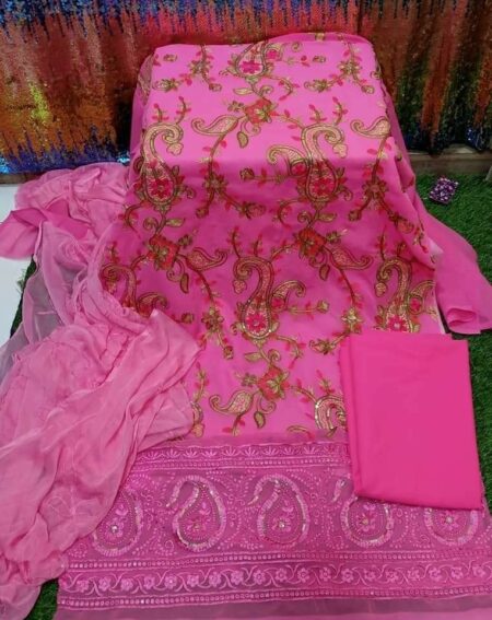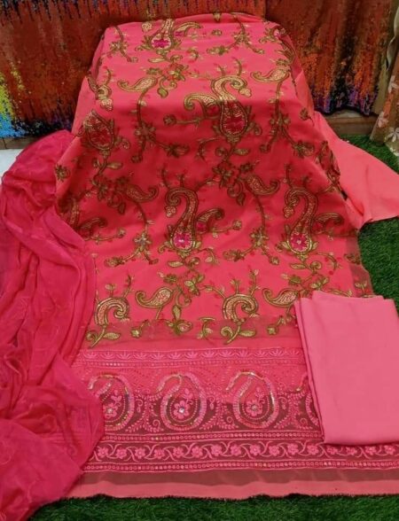 জামা ইন্ডিয়ান জর্জে ট ফুল বডি এমব্রয়ডারি প্লাস সিকোয়েন্স কাজ করা